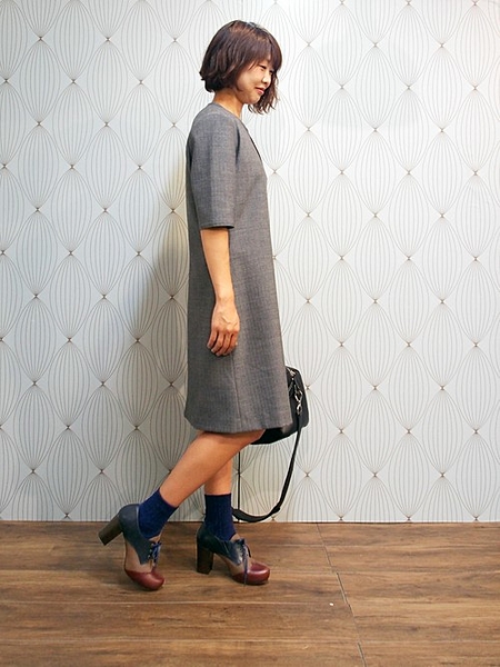 女性らしいレモントゥの一足。履き口のカッティングがきれいです。クルーソックスと合わせてトラッドな印象に。