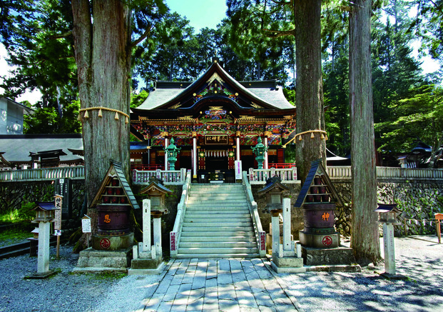 山々の強く厳しい「氣」が成功を導くとして参拝者が絶えないパワースポット。創祀者・日本武尊(やまとたけるのみこと)の案内役をつとめ、生命力の高い狼を祀る。「ほかにも拝殿前にそびえ立つ巨大杉の御神木など、秩父の自然と息吹を感じます。たくさん吸収して御利益をいただいてください」(暁さん)