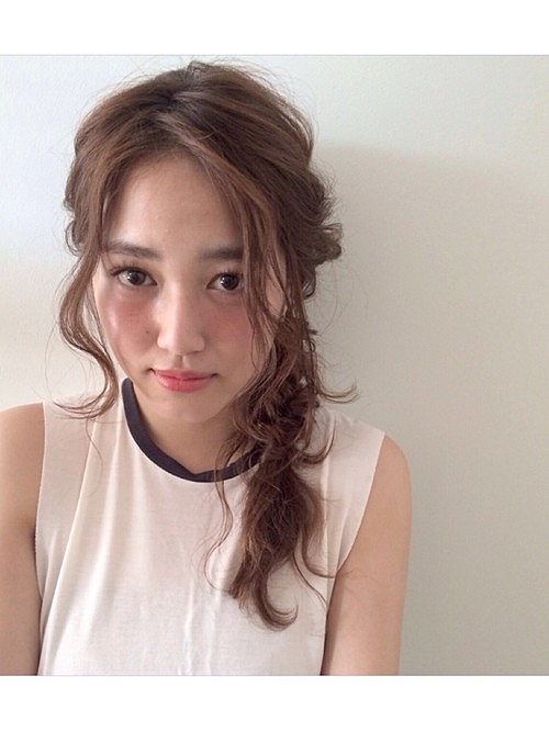 あえて前髪をすこ~しだけ残し、ゆる巻きに。