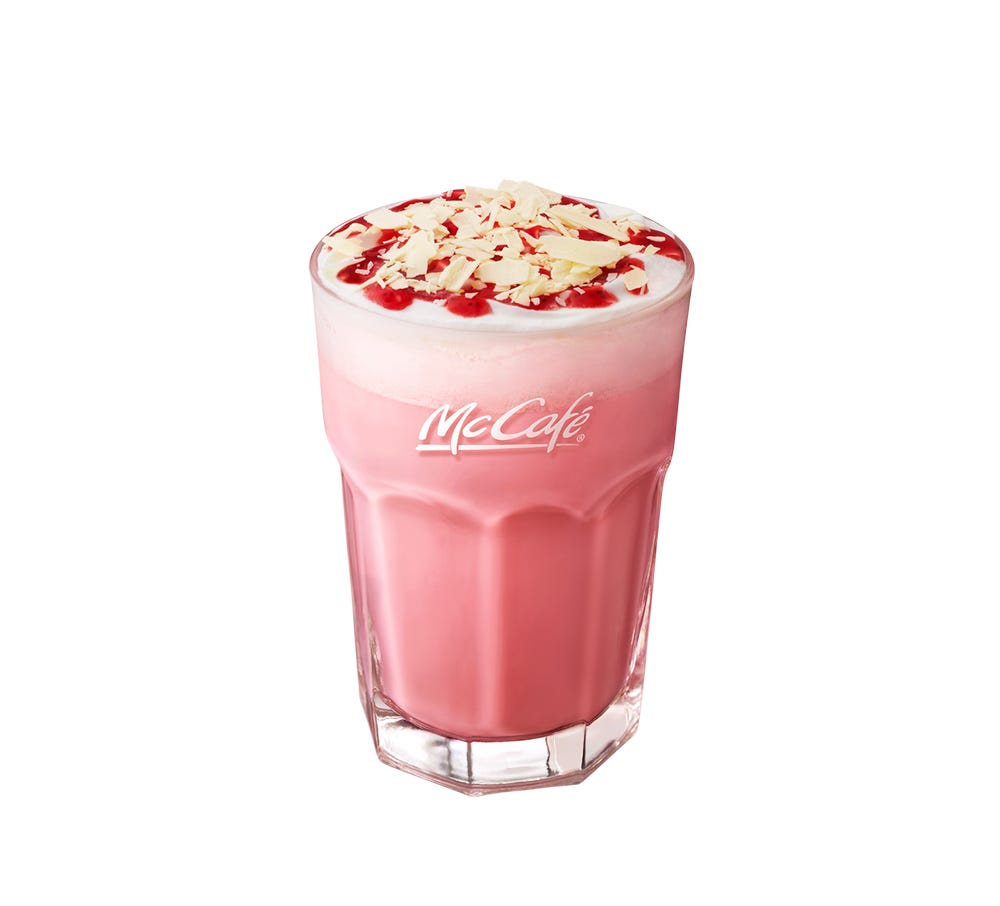 ホワイトチョコレートの甘みとストロベリーミルクのほんのりとした甘酸っぱさが組み合わさったスッキリした味わいを楽しめちゃう。見た目が華やかで、かわいらしいアイスドリンク♪