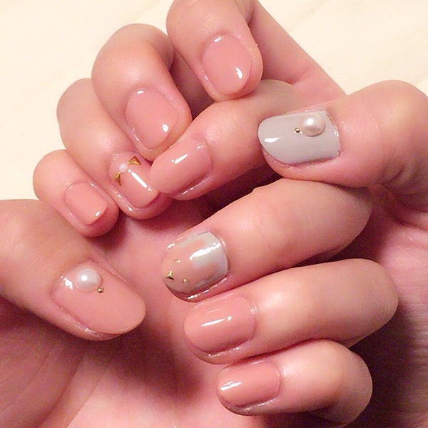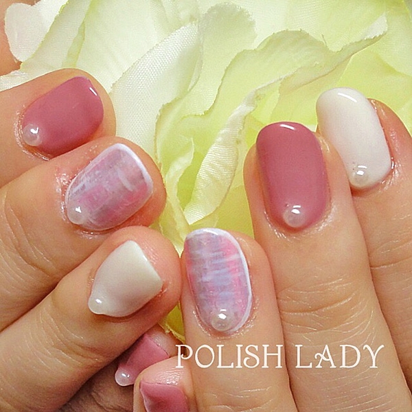 紫っぽい青みピンクがお洒落なピンクネイル。