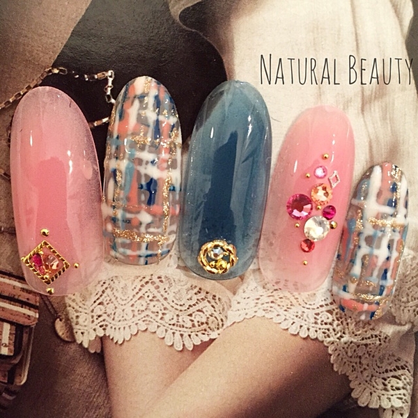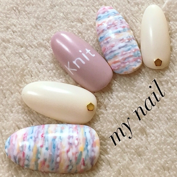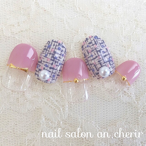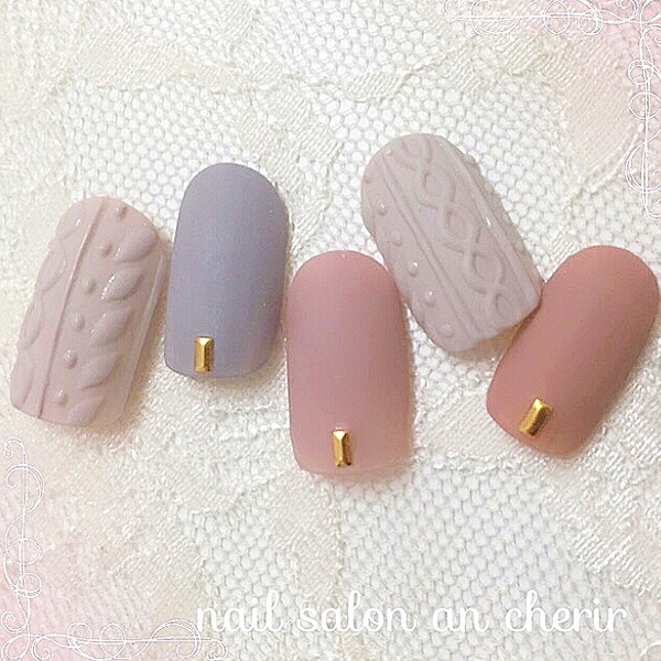 ツイードネイルとニットネイルが秋冬らしいピンクネイルに!