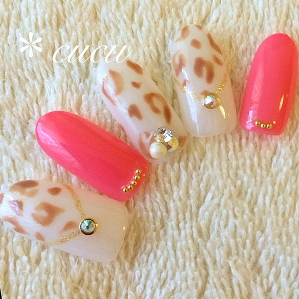 ショッキングピンクをポイントにべっ甲とラメで大人っぽく。