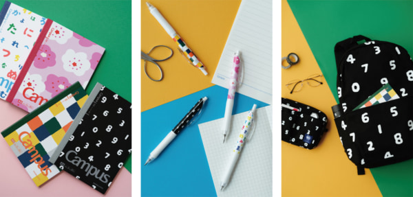 Campusノートの他にも、刺繍加工をほどこしたノートブックカバーやゲルインクボールペン、ペンケースの他、文具を持ち歩くための収納アイテムもラインナップ。