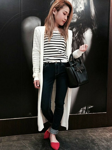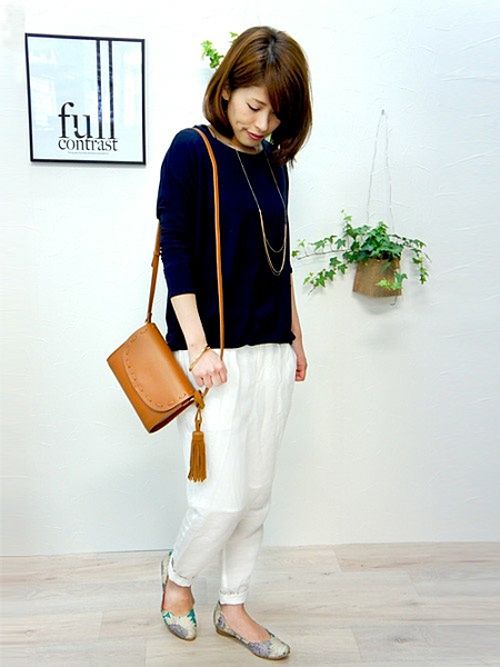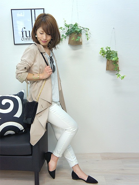 モノトーンコーデが普段多い人は、このようなカラーのフラットパンプスで華やかにしましょ!