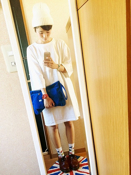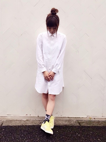 シャツタイプの白ワンピースは丈の長さによって着こなしもイメージも随分と違ってきます。ヒザ上ならキュート、セクシーといったコーデが可能に。