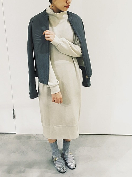 ヒザ丈は着回し力抜群!単品でシンプルに着こなしても良いし、羽織に使う事も可能です。ニットの白ワンピースに重ねるというのもお勧めです!