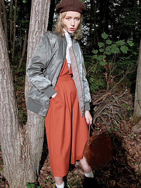 きれいめ素材で大人っぽく仕上がるブルゾン。スタンダードなブルゾンはもうゲット済み、っていう人はぜひロング丈にトライして。