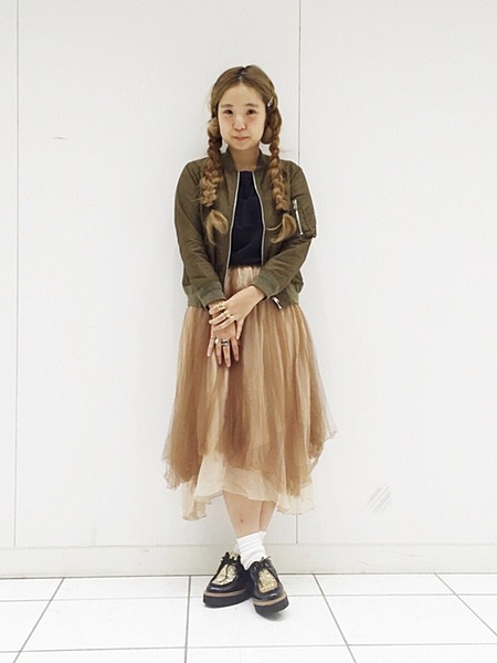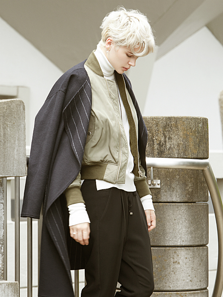 マニッシュな印象のMA-1も、トレンドのロング丈でエレガントに。ダブルファスナーなので、着こなし方も無限大!
