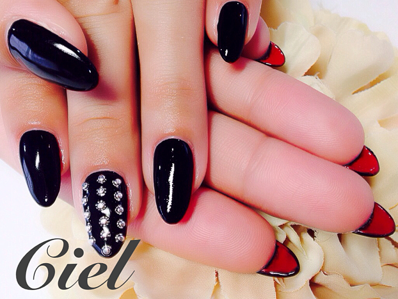 大人っぽネイルに赤のさし色でとってもお洒落☆