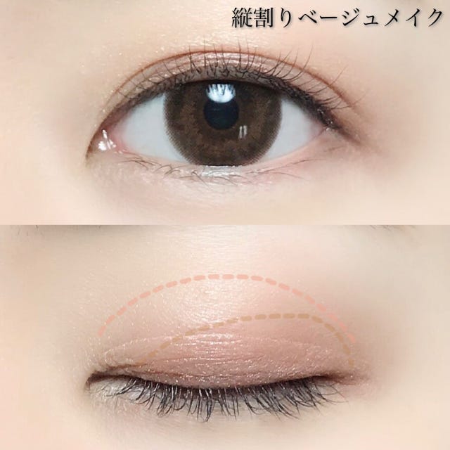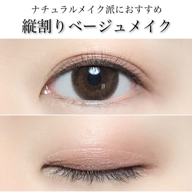 最初にご紹介するのは、ナチュラルメイク派の方におすすめしたいベージュカラーの縦割りメイクです。