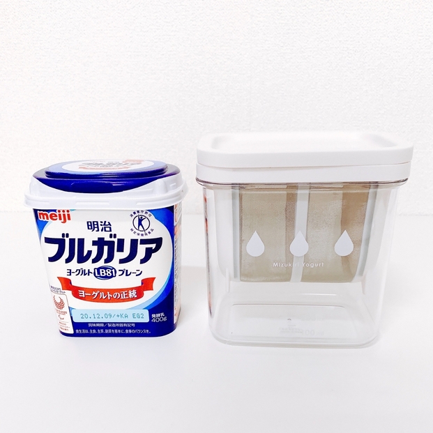 試しに作ってみます。用意するのは、市販のヨーグルトとこの容器の2つのみ。