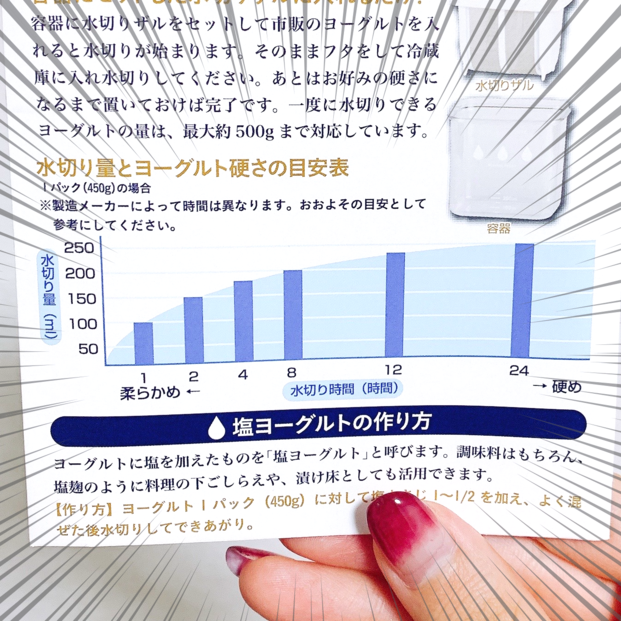 一度に水切りできるヨーグルトの量は、最大500グラムみたいです。