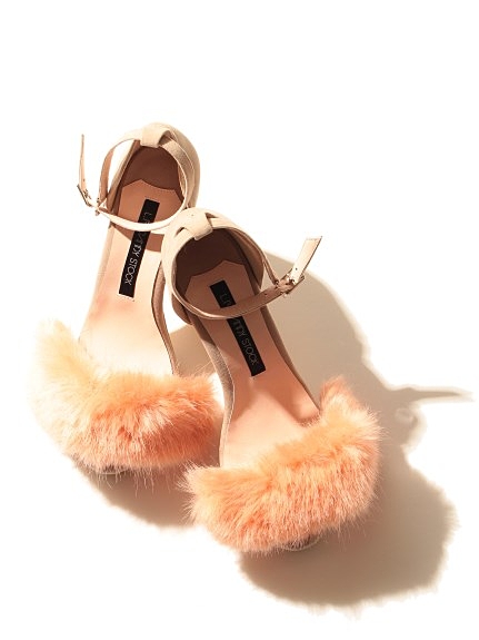 モコモコとしたファーモチーフで全体を飾り、ゴージャスに仕上げたパンプス。個性的でボリュームのあるルックスに、みんなの視線が集中♡