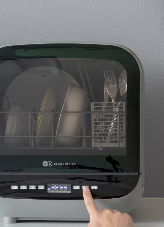 角に丸みを持たせたコロンとしたデザインが可愛らしい、BEAMS DESIGNの食洗機。