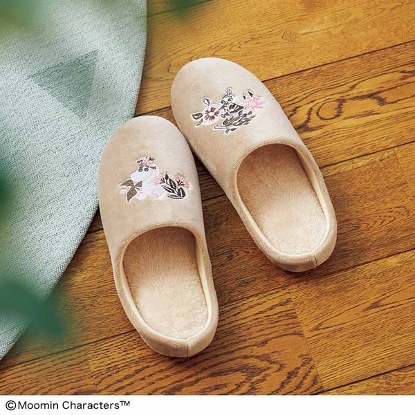 リトルミイ&スノークのおじょうさんデザインの、手洗いできるルームスリッパです。ベージュベースにやさしいピンクの挿し色がかわいく、お部屋にも馴染みやすいのが嬉しいですよね。ふわふわで心地よく履けるスリッパは、足先が冷える寒い冬の味方!