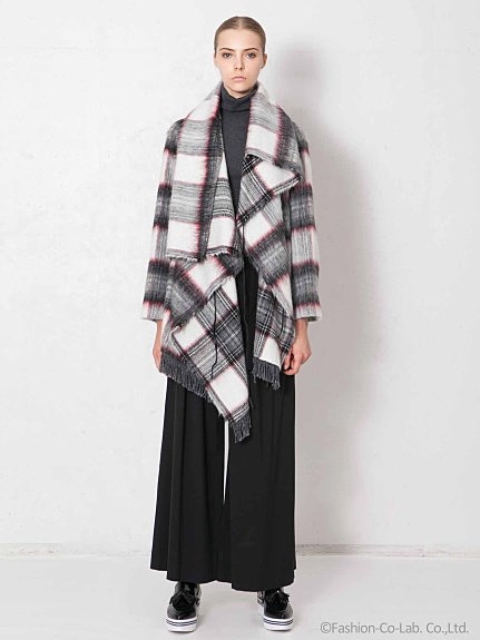 チェック柄をアウターでコーディネートにオン。