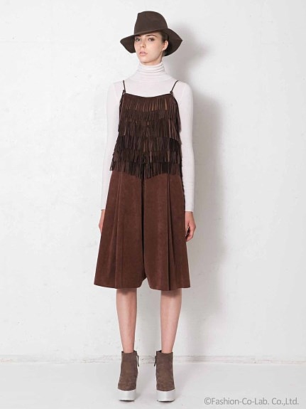 70's感漂うフリンジ✕スウェードのコーディネート。