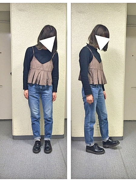 前のみボトムスに少しインして、スタイルをまとめてあげて。