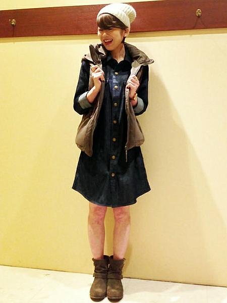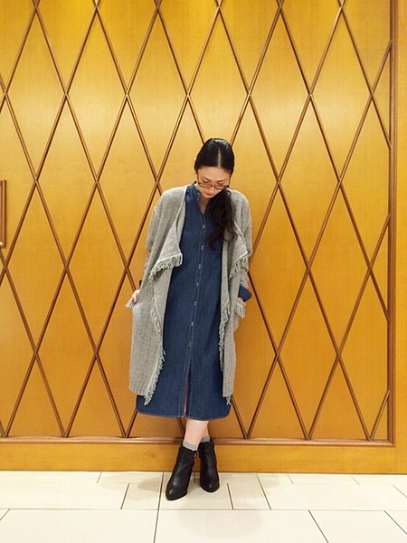 7分丈で涼しくなる秋冬にちょうどいいデニムワンピースです。