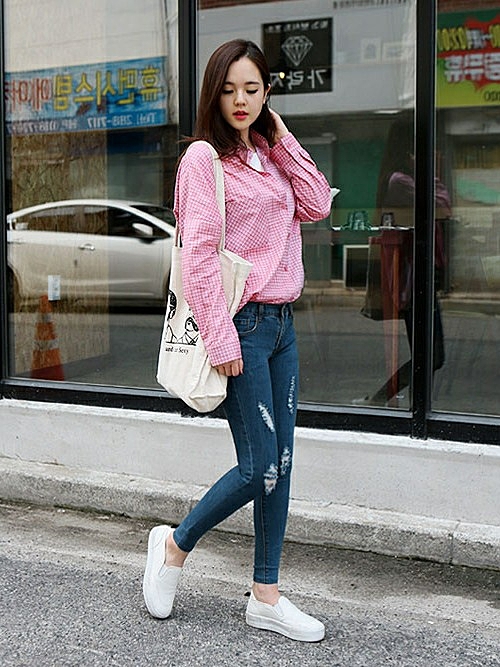 形のキレイなダメージジーンズは大人かわいいコーデに取り入れやすい!