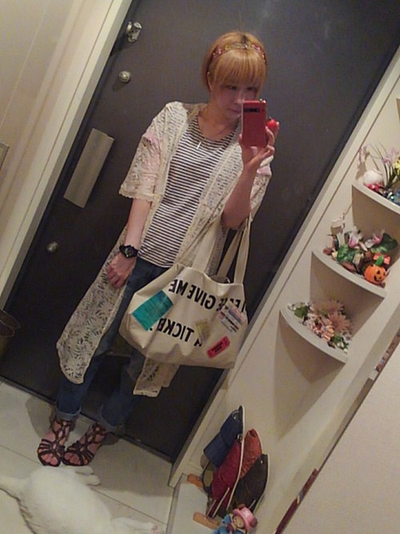 めずらしいホワイトのボーイフレンドジーンズは爽やかな雰囲気。