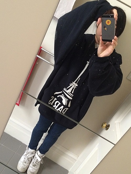 目を引くスキニージーンズはブリーチ加工が空のような模様でカッコいい!