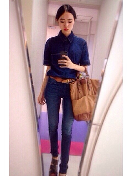 トップスをインしてベルトをするとウエストがくびれてスタイル良く見えます!