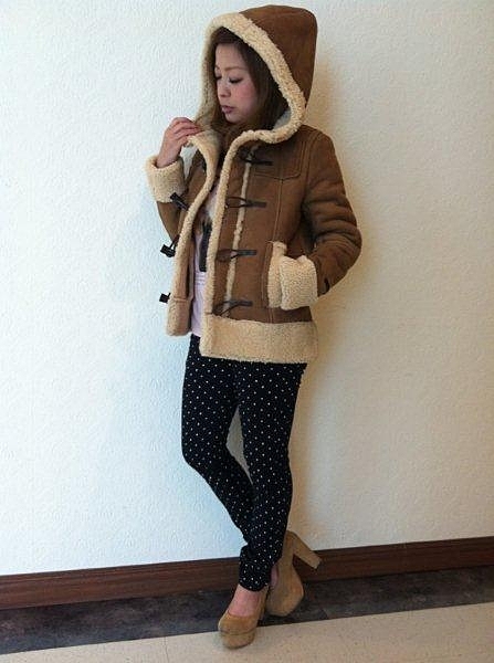 大きな襟元がポイントのダッフルコート。スキニータイプのパンツでシンプルに合わせてすっきりまとめるも良し、スカートを合わせても可愛いです。