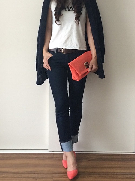 ニットカーディガンの羽織りでフェミニン♪