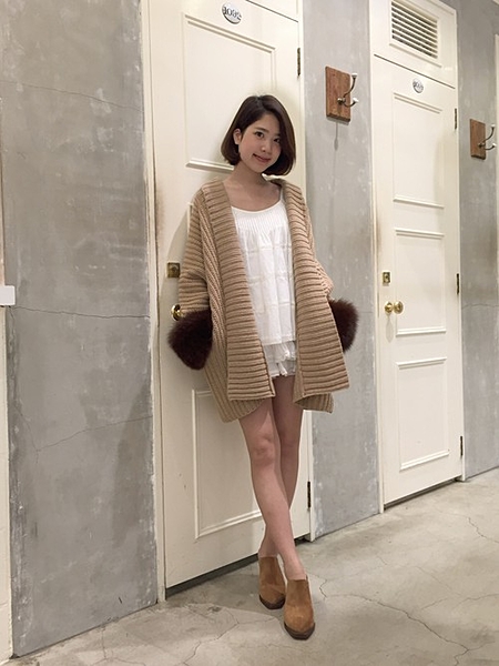 短めのニットカーディガンだからキュート♪