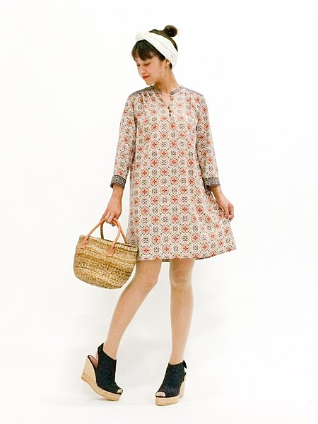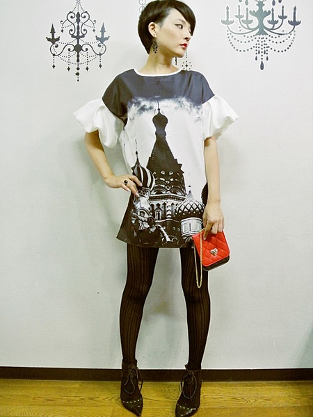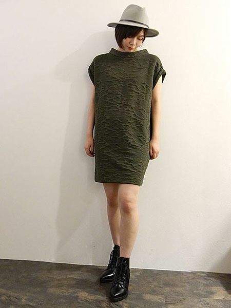 シンプルなシルエットながら、コントラストのはっきりした花柄が力強いミニワンピ。変に重ね着せず、この美しさをアピールしたい。