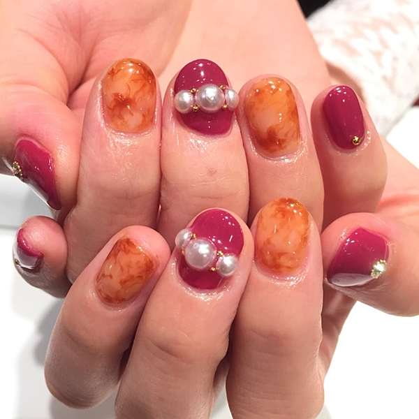 薬指だけたっぷりパールを詰め込んで。