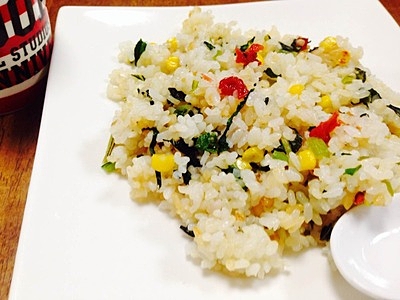 ■疲れた胃に効く! マクロビ 小松菜とコーンの梅チャーハン