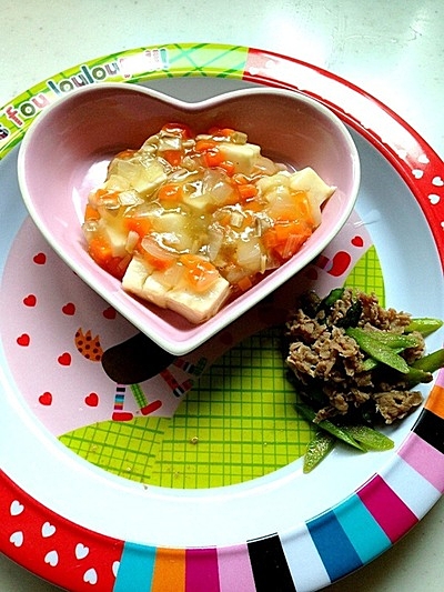 マーボーなすにニンジンも入ってます。保育園のお弁当は栄養もきちんと考えているのでぜひ参考にすべきですね。