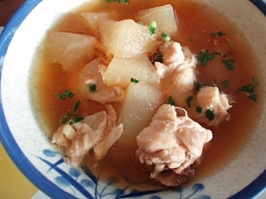 鶏肉は脂身も少なくヘルシーに、冬瓜は体を温めてくれる栄養素があるのでダイエット向きのスープですね。
