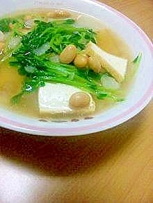 イソフラボンがたっぷり含まれて栄養満点なダイエット向きのスープですね。とてもあっさり頂けそう!