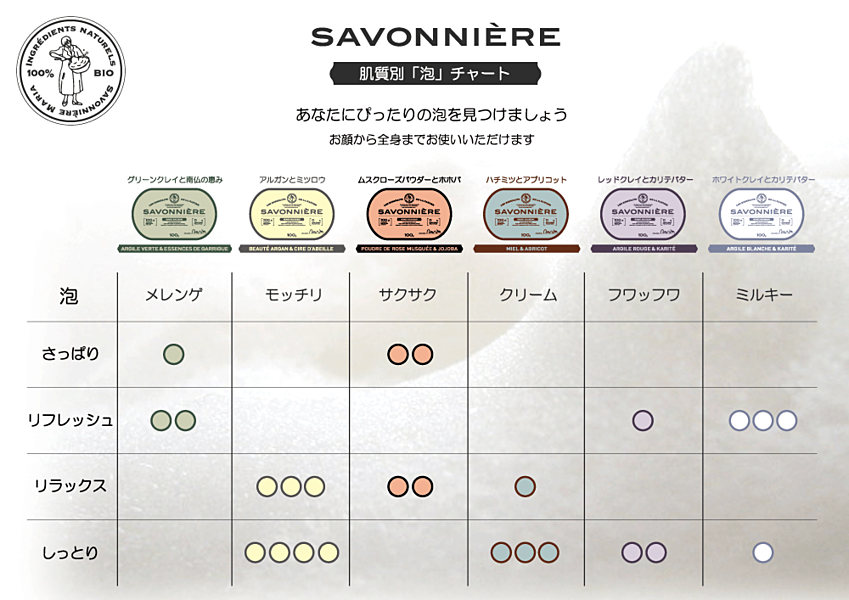 SAVONNIÈRE(サヴォニエール) 直営オンラインショップ。3,888円(税込・100g1個)お買上げの方は送料無料期間中です。