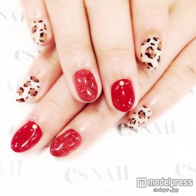 赤とレオパード柄の組み合わせは永遠の憧れ。どちらも似合う女性になりたいと思う人も多いはず。そんな方は気軽に取り入れられるネイルで味わってみて。