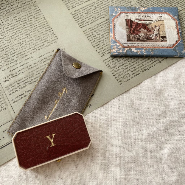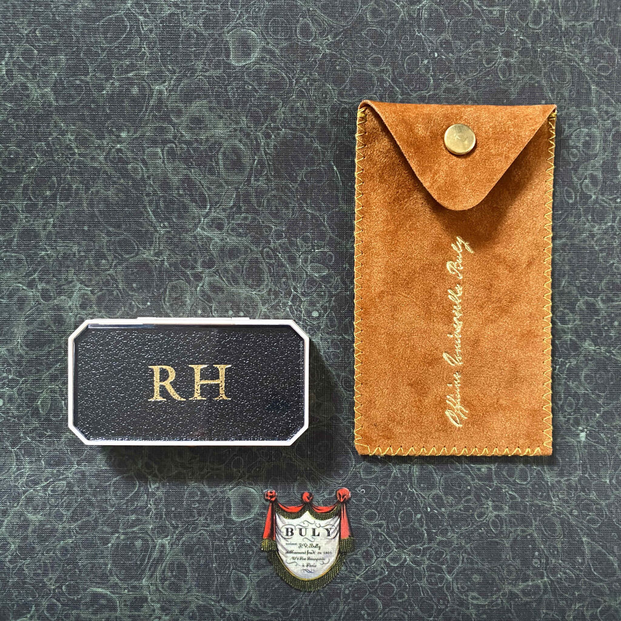 そしてこのリップバームですよ...とにかく見た目が可愛すぎる!ケースは、数え切れないくらい多くのレザーペーパーから色を選び、大文字アルファベット3文字まで刻印ができます。「♡」も入れられますよ。ケースはさらにベルベット生地に包まれて...うっとりする上品さです。