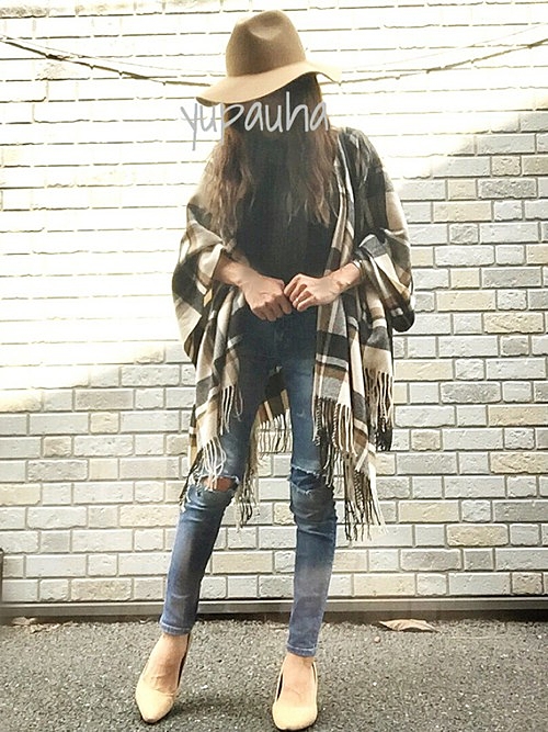 おしゃれ感でるチェック柄ポンチョ♡