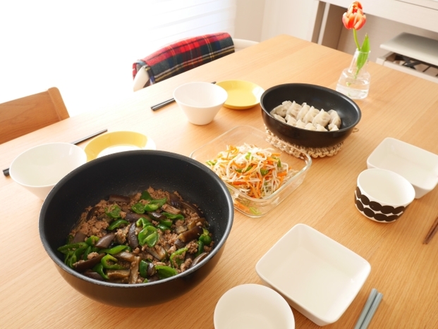 1つ目の時短&ラク家事アイデアは、「お皿に盛り付ける」工程を省いて、調理を終えたらそのまま食卓に出せるフライパンや保存容器を使うことです。