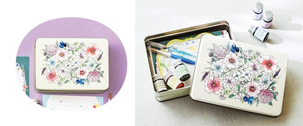 3ヵ月目に届く、インクや紙ものを収納できる専用の缶は、4~6ヶ月目監修のイラストレーター櫻井さん描き下ろしのデザイン。うっとりするほどかわいいですね♡