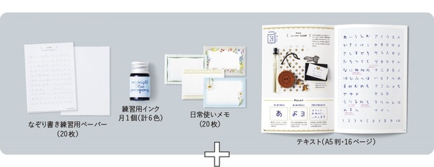 6ヵ月のレッスン講座で、毎月1レッスンずつ届きます。テキストに加え、ガラスペンやインク、カードなどが届く充実のセット内容なので、初めての方でも気軽に始められますよ。