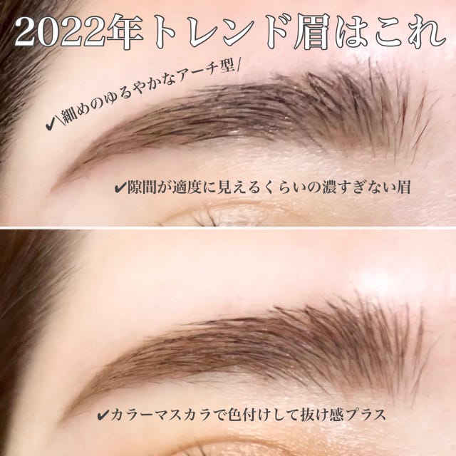 太眉ブームが少しずつ、変わってきています。2022年は90年代ブームにのり、眉も少しずつ細くて長めの眉が流行ってきます。