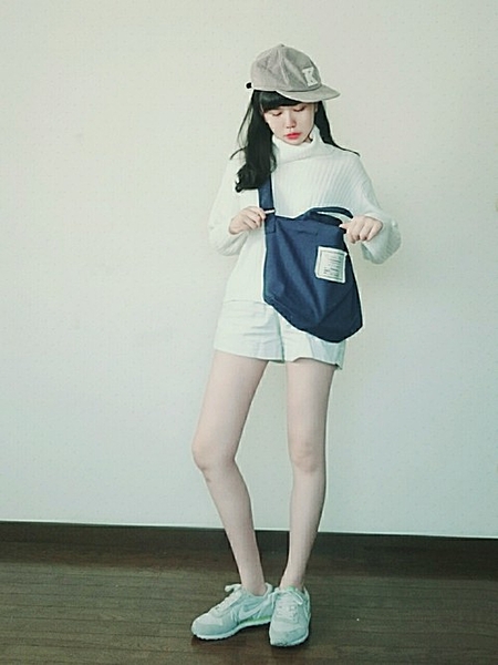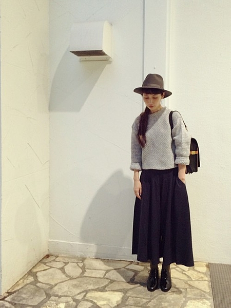 丸いシルエットならガーリーに。清楚な印象になるのが黒髪の良いところ。