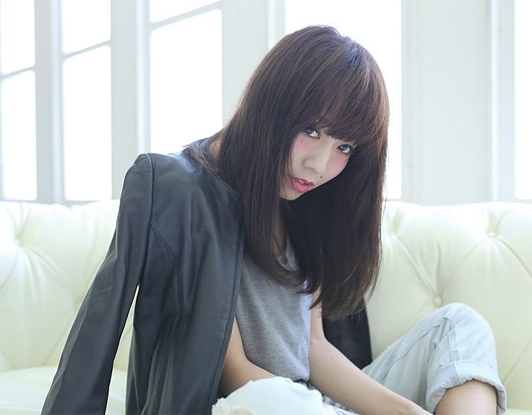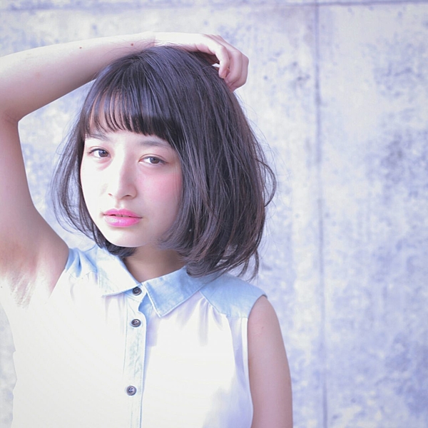 ちょこっと茶色めな髪色。パッツンで揃えてキャッチーに。