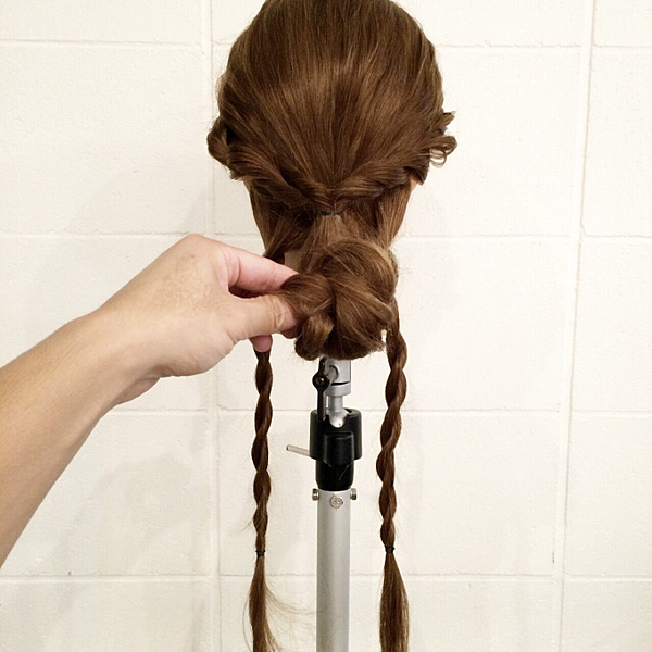 3.写真のように、3つツイストをつくります。真ん中が少し太めがオススメ。