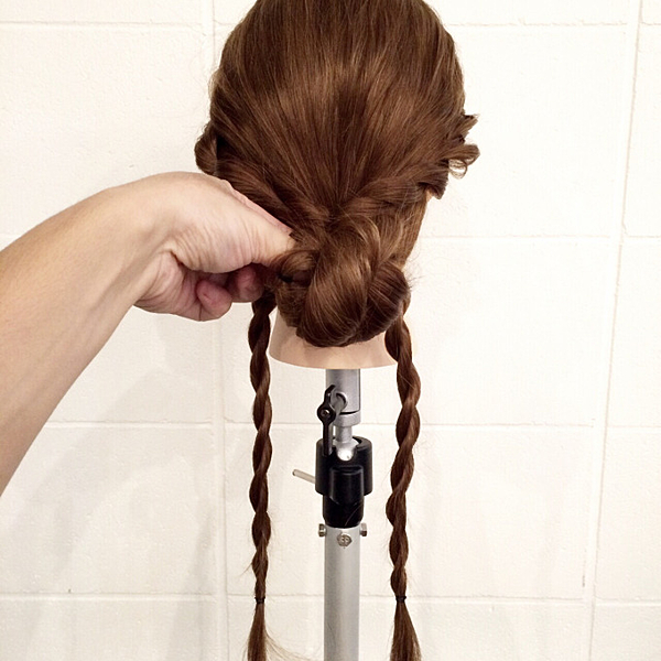 6.残った片方の髪を、グルグル巻きつけピンでとめます