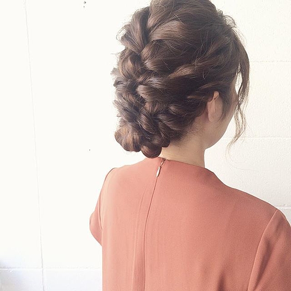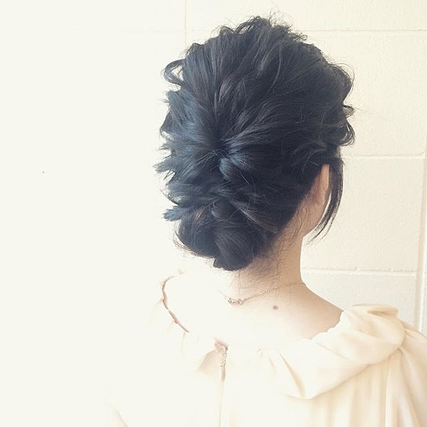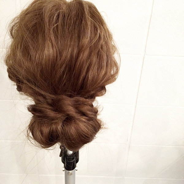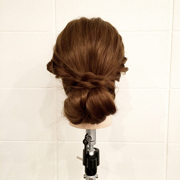 下にボリュームを持ってきたシニヨンアレンジ。美容院でのオーダーも多いスタイルです。